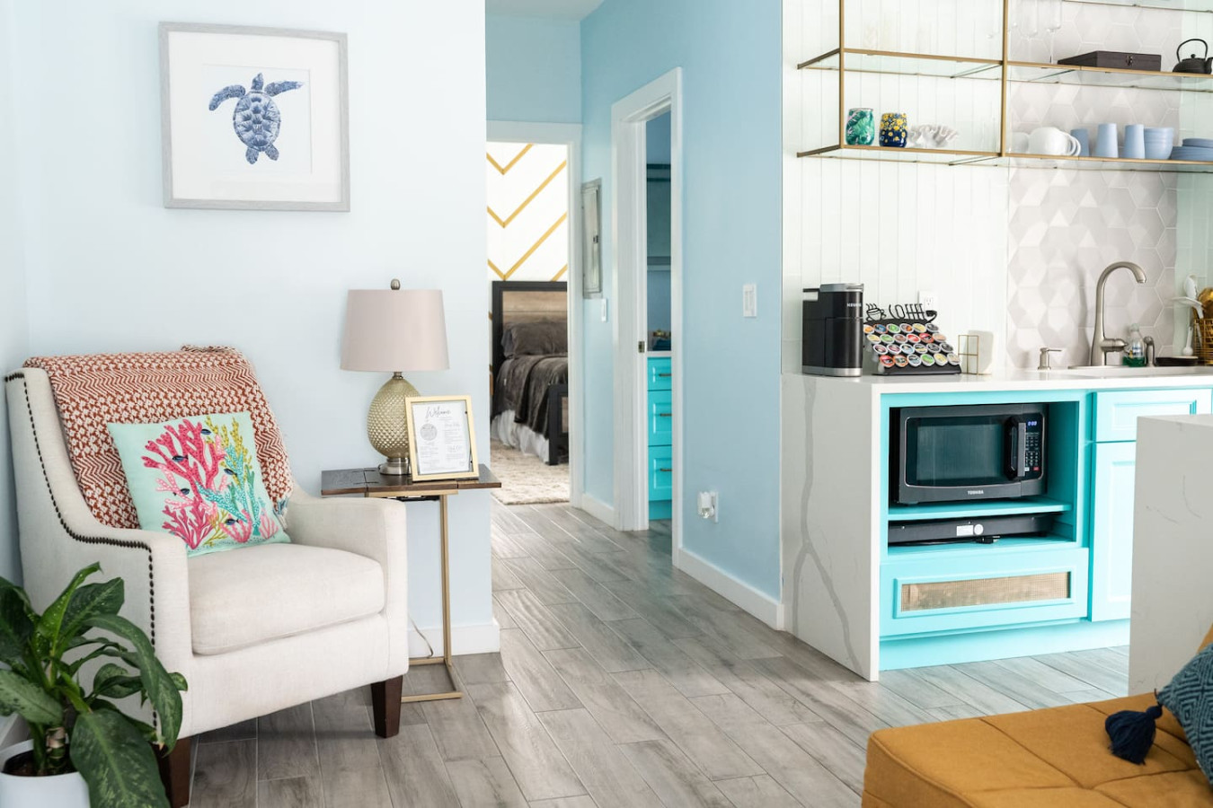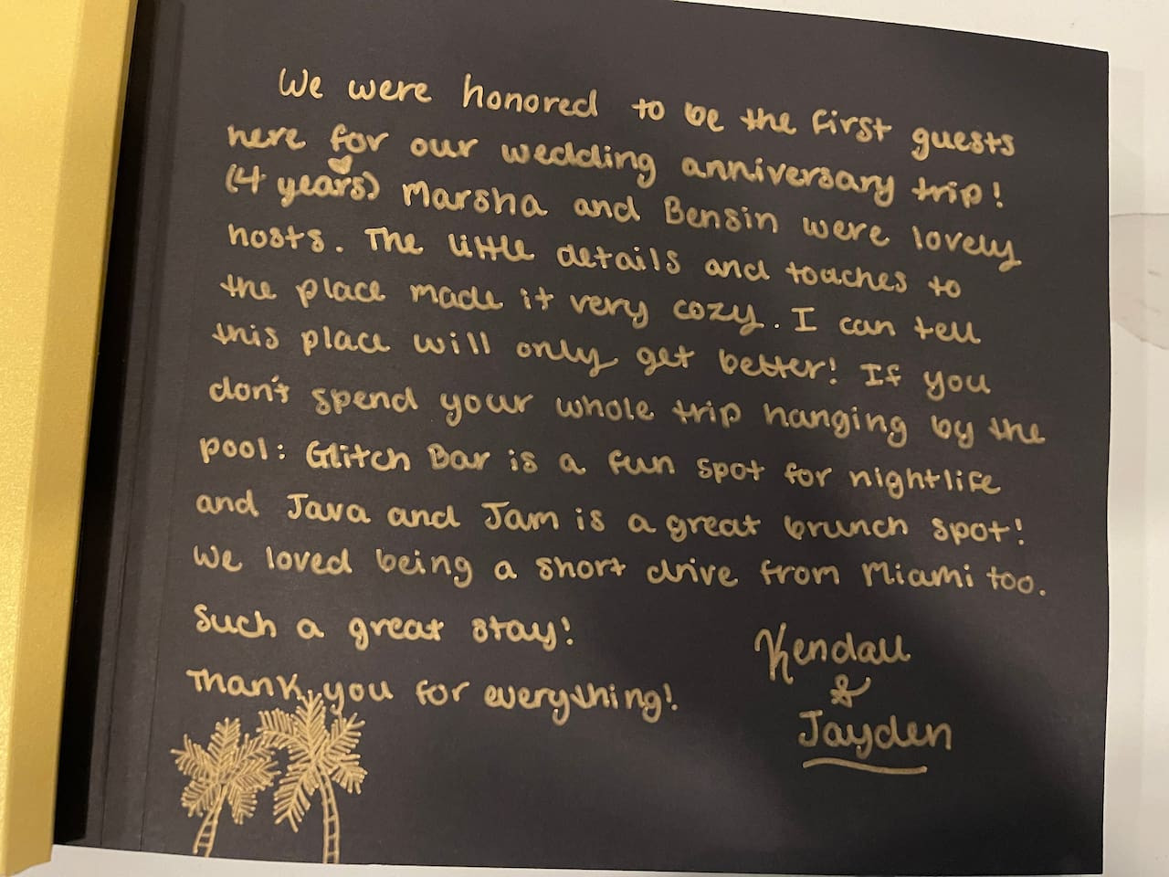 Loved the space. It almost felt like we weren’t in Florida. The outdoor space is gorgeous , there were so many fruit trees! Inside had just enough space for us, and there were so many little things that made it obvious that a lot of thought was put into the space. The pool looked great too, wish we had a chance to take a dip. Marsha was friendly and very responsive. Enjoyed every minute of our time there. Thank you for helping us create amazing memories!