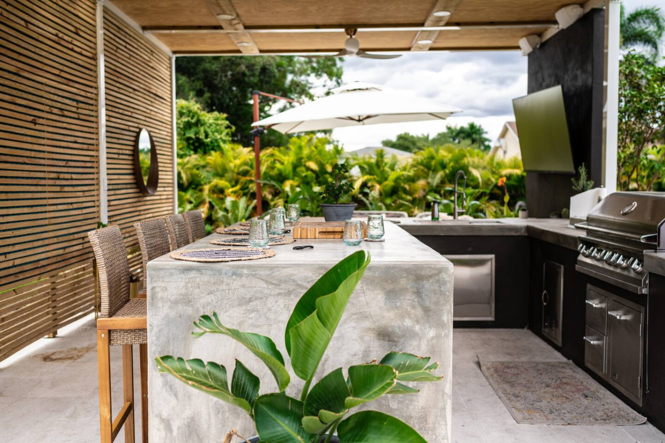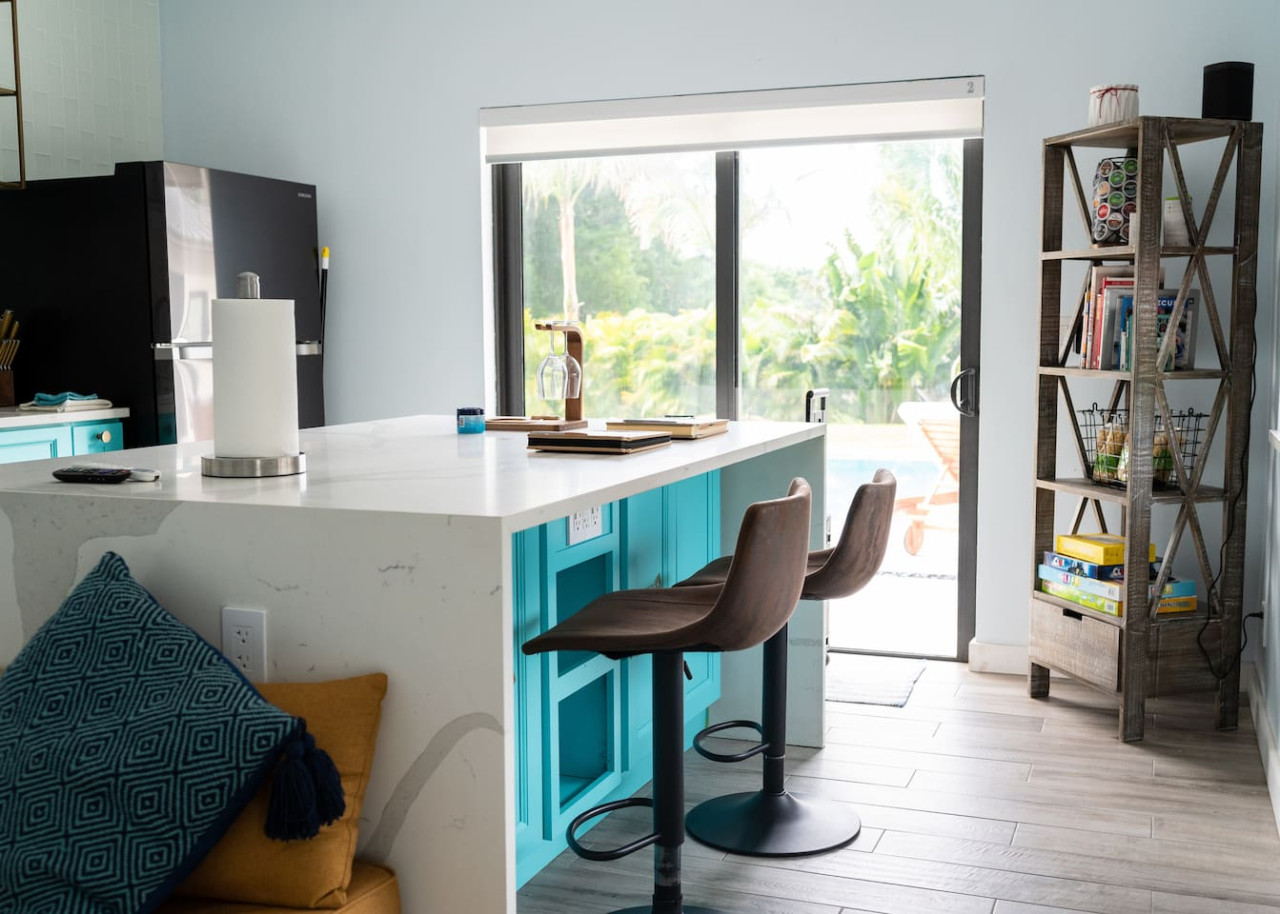 Escape to a romantic Fort Lauderdale retreat for 2! This private 600 sq ft guest house offers a luxury sanctuary with a full kitchen & modern bath. Enjoy access to incredible shared amenities including a pool, spa, and outdoor kitchen. Perfect for couples seeking a serene getaway just minutes from the beach and Las Olas Blvd. On-site parking included. Discover your serene and romantic Fort Lauderdale retreat, a newly constructed 600 sq ft guest house perfect for couples. This private sanctuary is tucked away on our property, offering a blend of luxury and relaxation. **Indoor Living Space:** * **Living Area:** A welcoming, coastal-inspired space with comfortable seating and a wall-mounted HDTV. * **Full Kitchen:** Modern and fully equipped with a stove, microwave, refrigerator, coffee maker, and a Ninja Air Fryer. The pantry is stocked with spices and herbs for your culinary needs. * **Bedroom:** A tranquil retreat featuring a sumptuous Queen-sized bed, ample dresser space, and its own HDTV. * **Bathroom:** An oasis with a modern, curb-less walk-in shower, heated towel warmers, and complimentary shampoo, conditioner, and body wash. * **Climate Control:** You have full control over the apartment's mini-split air conditioning for personalized comfort. **Shared Outdoor Paradise:** Please note these wonderful outdoor amenities are shared with the residents of the main house. * **Heated Spa & Pool:** Unwind in the bubbling hot tub or take a refreshing dip in the inviting pool. * **Secluded Patio & Outdoor Kitchen:** Enjoy your morning coffee or an evening meal in a tranquil outdoor setting with a fully equipped kitchen. * **Leisure & Relaxation:** Challenge a friend on the basketball court, enjoy outdoor games, or simply sway in the hammock. Guests will have exclusive and private access to the entire 600 sq ft guest house. Your stay also includes full access to the shared outdoor amenities on the property, including: * Pool * Hot Tub / Spa * Patio * Outdoor Kitchen * Basketball Court Check-in is simple and convenient with our self-check-in process. Complimentary on-site parking is also provided for your vehicle. This guest house is located on the same property as our main home, where our family resides. We value your privacy and will give you your space, but we are available should you need anything or have any questions during your stay. Nestled in a serene equestrian community with mature tree-lined streets, our home offers a tranquil retreat in a quiet neighborhood setting. With one bedrooms and one bathroom, it's the perfect escape for families or friends seeking relaxation and comfort. Nearby attractions: 1. Flamingo Gardens: Immerse yourself in the beauty of nature at Flamingo Gardens, where you can explore lush gardens, encounter native wildlife, and learn about conservation efforts. 2. Sawgrass Mills: Shop 'til you drop at Sawgrass Mills, one of the largest outlet malls in the country, offering a wide range of stores, dining options, and entertainment venues. 3. Markham Park: Enjoy outdoor recreation at Markham Park, featuring hiking trails, picnic areas, fishing lakes, and a dog park, perfect for a day of family fun. 4. Seminole Hard Rock Hotel & Casino: Test your luck at the Seminole Hard Rock Hotel & Casino, where you can play casino games, dine at world-class restaurants, and enjoy live entertainment. 5. Volunteer Park: Relax in the peaceful surroundings of Volunteer Park, which offers sports fields, playgrounds, and walking trails for outdoor enjoyment. 6. BB&T Center: Catch a live concert or sporting event at the BB&T Center, a premier entertainment venue located just a short drive away. 7. Sawgrass Recreation Park: Experience the thrill of an airboat ride through the Florida Everglades at Sawgrass Recreation Park, where you can encounter wildlife and learn about the unique ecosystem of the region. Whether you're seeking outdoor adventure, shopping excursions, or cultural experiences, Fort Lauderdale offers something for everyone to enjoy. We hope you have a wonderful time exploring the nearby attractions during your stay at our peaceful retreat Uber or Lyft are great ways to get around the area. Parking is easy and free in most places. * **Shared Property:** Please be aware that this guest house is on the same property as our main home. The pool, hot tub, and all outdoor areas are shared spaces with our family. We make every effort to provide guests with privacy. * **Outdoor Space Condition:** As with any outdoor setting, conditions are subject to weather and the natural environment. If you require the outdoor space to be specially detailed and prepared immediately prior to your arrival, please notify us at least 72 hours in advance. A $500 service fee will apply for this request. * **Safety Features:** For your safety, the guest house is equipped with a smoke alarm, carbon monoxide alarm, fire extinguisher, and a first aid kit.