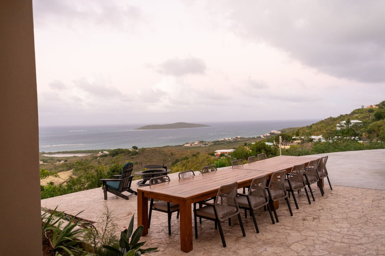 Perched above the coastline with sweeping views of Buck Island and the Caribbean Sea, this private 4-bedroom compound was designed for multi-family escapes and unforgettable group stays. With two separate living areas, expansive outdoor terraces, and panoramic ocean views from multiple rooms, the home offers the perfect balance of togetherness and privacy. Highlights • Sleeps up to 12 • 4 private bedrooms + 4 full bathrooms • 2 sleeper sofas for flexible sleeping • Two separate living rooms (space to spread out) • Large ocean-view terrace with outdoor dining • Minutes to Christiansted boardwalk + restaurants + nightlife • ~10 minutes to beaches • Total privacy — no shared spaces Amenities • Gigabit Wi-Fi • A/C in all bedrooms • Fully equipped kitchen • Smart TV • Washer + dryer • Smart-lock self check-in Guests have exclusive, private access to the entire villa—all bedrooms, bathrooms, living areas, kitchen, and outdoor terrace. There are no shared spaces on the property. We won’t be on-site during your stay, but we’re always available by message or phone for recommendations and support. You have exclusive use of the property. Additional bedrooms are locked off and will not be occupied. We believe in giving our guests complete privacy to enjoy their vacation. While we will not be present at the property during your stay, we are always available and happy to assist with any questions or recommendations. Please feel free to reach out to us via the booking platform or by phone at any time. Neighborhood Crown of the Caribbean is located in Estate Seven Hills above Christiansted—a quiet, breezy hillside neighborhood known for its big-sky views and peaceful, residential feel. Homes here sit up high, which is why you’ll get those signature panoramas out toward Buck Island and over Christiansted. You’re away from the boardwalk buzz, but still just a short drive to downtown Christiansted for waterfront dining, shops, and sunset strolls along the harbor. Nearby highlights Christiansted Boardwalk + downtown (restaurants, bars, shopping, harbor views) Buck Island adventures depart from Christiansted Harbor (snorkeling/boat tours are a favorite) The Buccaneer resort area (Shoys) is also a short drive outside Christiansted for beaches/golf/spa vibes What to know: Like most of St. Croix, a rental car is strongly recommended—it makes beach days, groceries, and exploring easy. St. Croix is best enjoyed with the freedom to explore, so we strongly recommend renting a car. The villa is in a peaceful hillside neighborhood above Christiansted—close to town, but you’ll want wheels for beaches, groceries, and island adventures. Rental car: Highly recommended (most guests pick up at the airport). Taxis/Rides: Available, but can be limited and less predictable than a car—especially at night or for longer trips. Parking: Free parking on-site at the home. Driving notes: Roads can be narrow and winding in places, and St. Croix drives on the left—take it easy your first day and you’ll feel comfortable quickly. Other things to note **Max occupancy at all times is 12. No visitors allowed, all guests must be registered. **Minimum Main Guest Age: 24 **Some regular maintenance services are required to keep our homes in excellent shape. Be informed that we have regular landscaping service and pest control management that may come during your stay. ** We have cameras on the exterior of the property for viewing or monitoring front door, common spaces outside and driveway. All of them are recording 24/7.